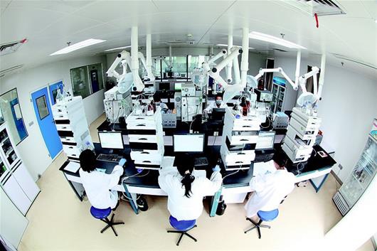 图为:db电竞·(dbgame)官方网站院士专家工作站技术人员正在开展新药研发。(受访企业提供)